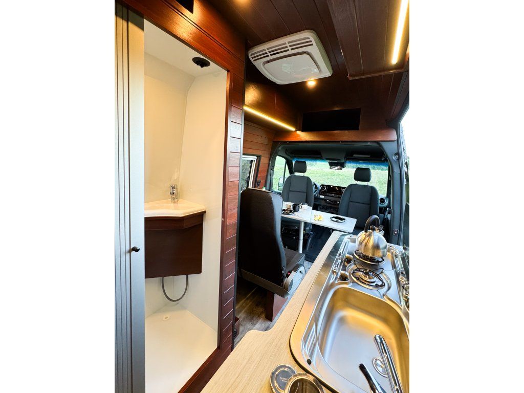 One of the most demanding parts of both domestic and professional renovations is the bathroom. Standard bathrooms are typically assembled only as plywood boards with sealed joints. When driving, the vehicle body twists, vibrates, and deforms, which sooner or later causes standard joints to loosen and water to get where it shouldn't. That's why we've come up with a solution you can be absolutely sure will never leak. By combining a frame structure, composite material, triple-layer insulation, and monolithic surface treatment, we have achieved a perfect result that can withstand extreme loads off-road, especially for 4x4 vehicles, expedition vehicles, and vehicles of L2 length or more.
