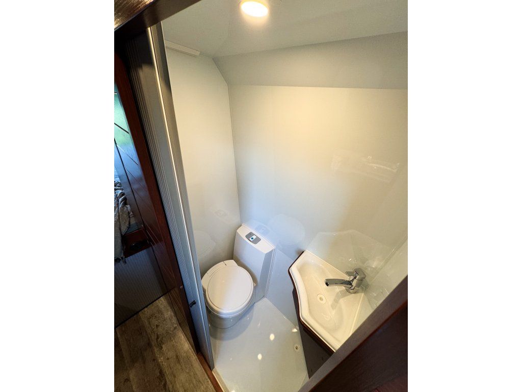 Our enclosures don't just have to be used for showering. You can place any selected toilet system here, whether built-in, portable, chemical, or composting (in the case of a built-in toilet, we recommend the Thetford C400 toilet, which fits perfectly). Of course, you can also add a sink or a vanity unit. And if you lead a heating outlet from the bottom of the enclosure, you can turn it into a drying room for wet equipment or laundry.