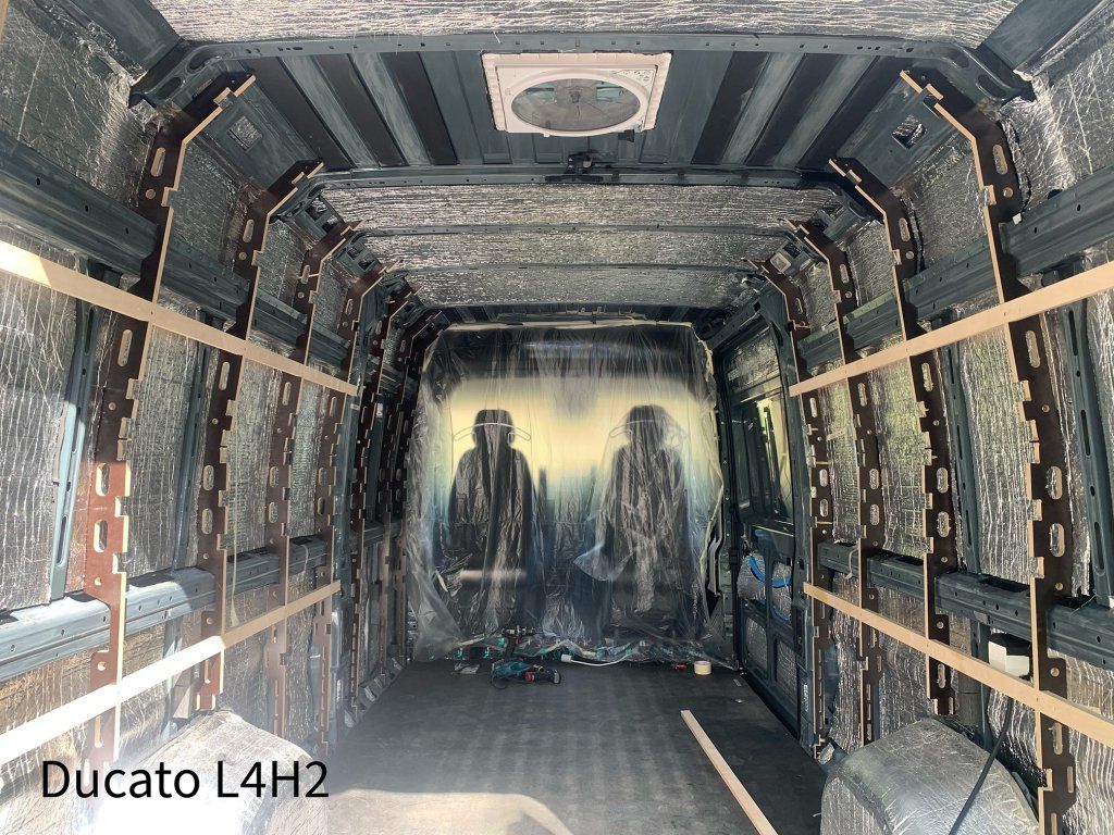 The positioning of the ribs is individual according to the size of the vehicle and the layout of the furniture. The installation time for the basic framework (without additional modules) for L2H2 vehicles is approximately 12-16 hours.